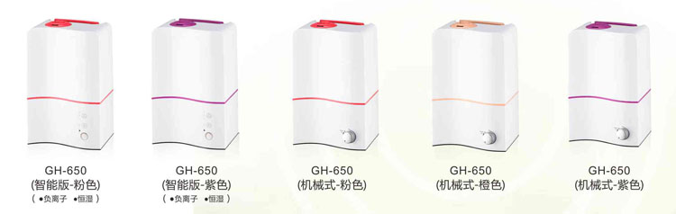 B)触摸高配款: 1). 触摸式雾量三挡调节 2). 智能恒湿 3). 负离子净化